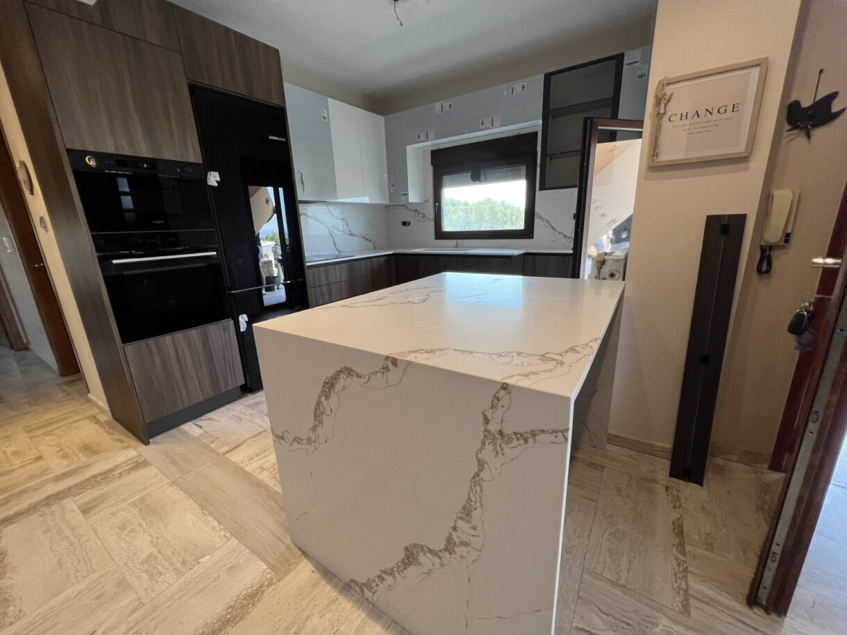 Τοποθέτηση Χαλαζιακού Πάγκου,Πλάτης και Νησίδα κουζίνας σε Οικία στον Τρίλοφο Θεσσαλονίκης